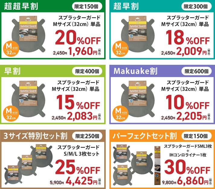 スプラッターガードSML3枚 + IHコンロライナー1枚
