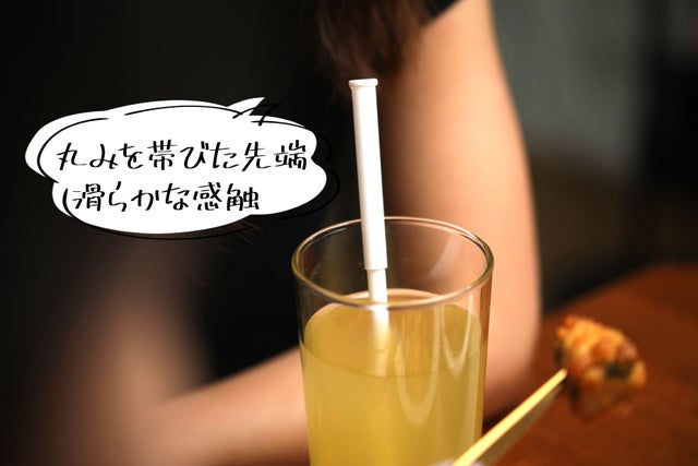 ストローの先端は丸みを帯びた形状になっていて、滑らかな感触です。
