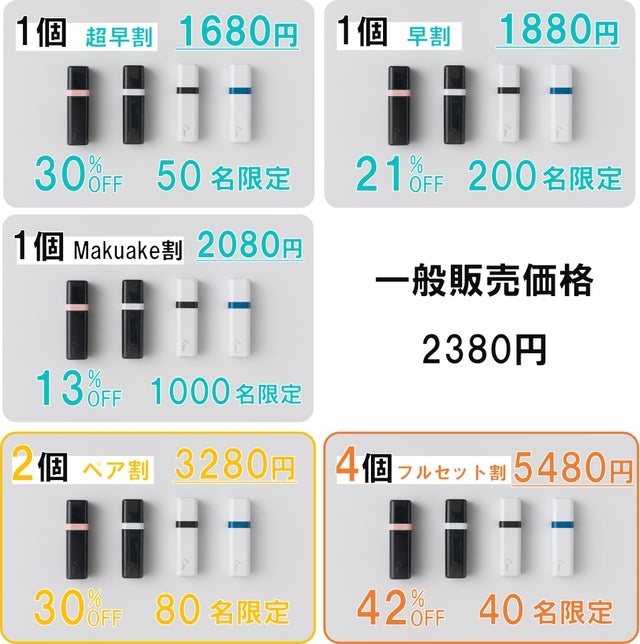 1.納期について 流行病に関係する社会情勢、国際情勢の影響や、天候、天災、量産状況によりお届けが遅れる可能性がございます。万が一このような変更がある場合は、早急に活動レポートなどで情報の共有をさせて頂く予定でございます。また、本文中に記載させていただいたスケジュールは、あくまでプロジェクト公開時点の予定です。応援購入の性質上、配送遅延が生じるおそれがございます。予めご了承下さい。 2.並行輸入品について 弊社が正規代理店として販売しておりますが、並行輸入品が発生する可能性がございます。正規以外での個人輸入等は、完全に防ぐことができない場合がございます旨、予めご了承のほどお願いいたします。 また、並行輸入品は正規代理店による製品保証を受けることができません。 また、正規代理店を通じて購入することで、日本国内での流通に必要な各種認証の取得や、関税の適切な処理が担保されます。 3.ご購入後のキャンセルについて ご購入後のご購入者様都合、使用感等によるキャンセルや返⾦はお受け出来ませんのでご了承下さい。 また、原則として配送遅延に伴う応援購入のキャンセルもできませんが、リターン配送予定月から6ヶ月を超えた場合には、希望者に限りキャンセルにて対応させていただきます。 4.通常販売予定価格について 本プロジェクトを通して想定を上回る皆様からご購入を頂き、現在進めている環境から量産体制を更に整えることができた場合、正規販売価格が販売予定価格より下がる可能性もございます。 最後に、S+Strawを手に取ってくださった皆様に喜んで頂けるよう、チーム一丸となって誠心誠意取り組んでまいります。ご検討のほど何卒よろしくお願い申し上げます。