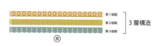 特別な編み機でシャギー、つなぎ、綿の3層構造にすることでふわふわで、なめらかな裏起毛が実現。