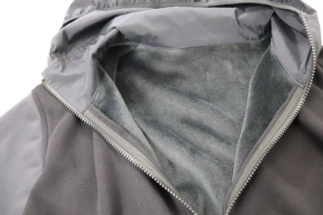 心配はご無用です。軽さのあるFLARE FORCEと中肉の裏起毛素材を組み合わせることで動きやすさと暖かさを両立することができました。