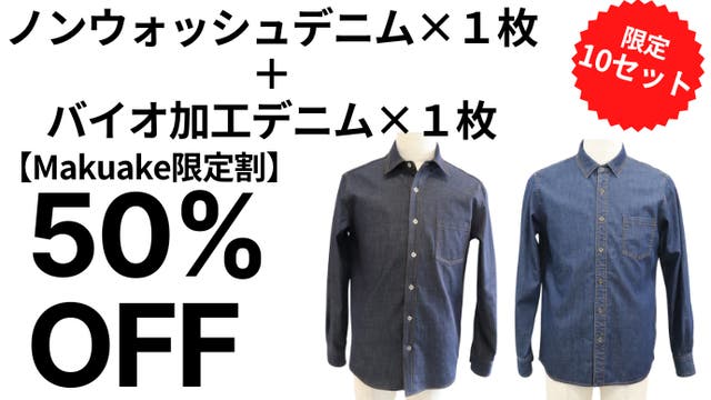 【Makuake限定割】50%OFFバイオ加工デニムロングシャツ1着 限定5着