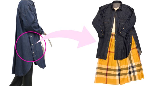 一年通して長く使えるデニム素材でコーディネイトの幅が広がる。
