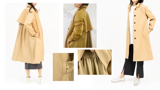 袖リブバックギャザーコート