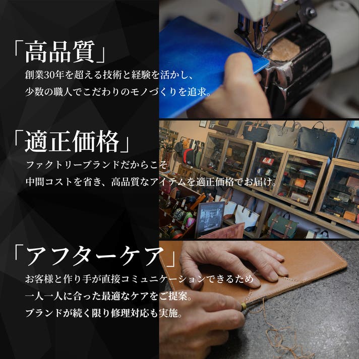 職人が心を込めて作ったアイテムを直接お届けすることで、高品質・適正価格・充実のアフターサービスの実現に努めています。