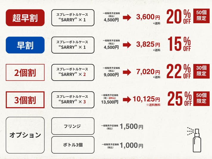 【超早割:20%OFF】スプレーボトルケース 1つ ※50個限定