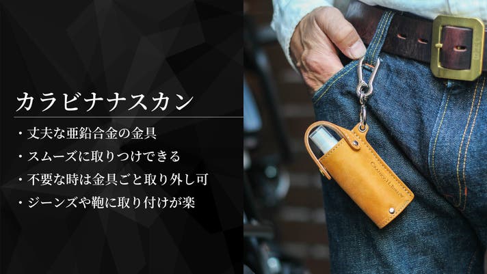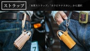 ストラップは「本革ストラップ」と「カラビナナスカン」の2種類をご用意。