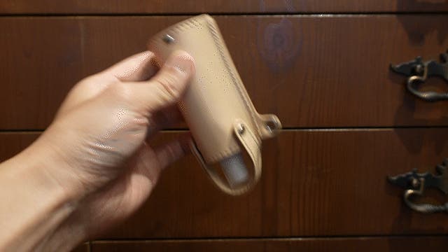 革は2枚張り合わせおり、厚みは2.4mmと丈夫な作りになっています。