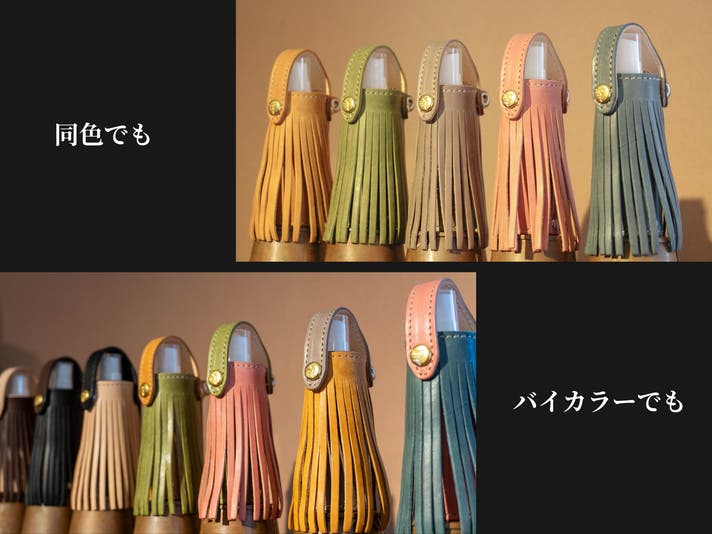 - 【本革】オールレザーで丈夫&上質な仕上がり。フリンジを選んでアレンジもOK!