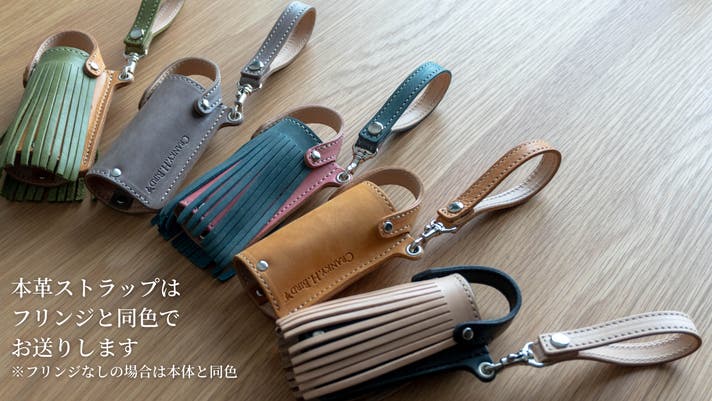 ※フリンジありで「本革ストラップ」をお選びいただいた場合、フリンジと同色の本革ストラップをお付けいたします。それ以外の色の組み合わせをご希望の場合はメッセージにてお問い合わせくださいませ。