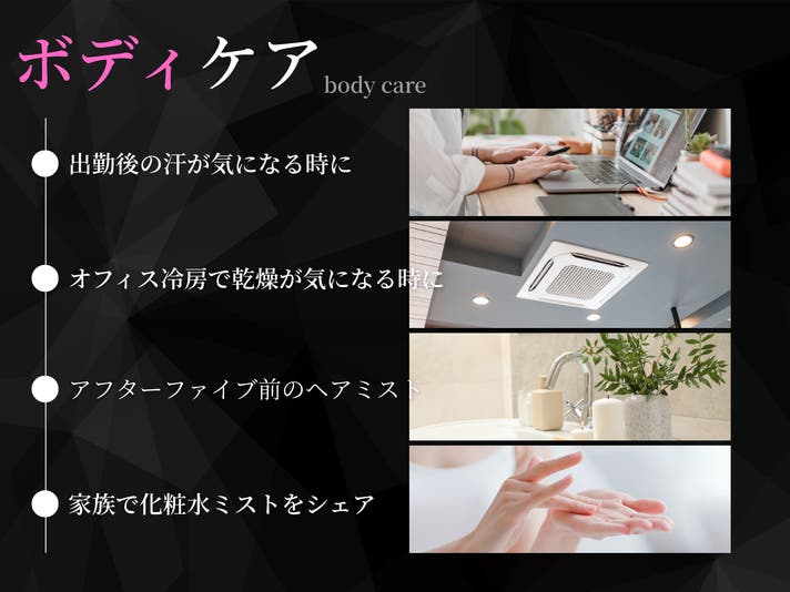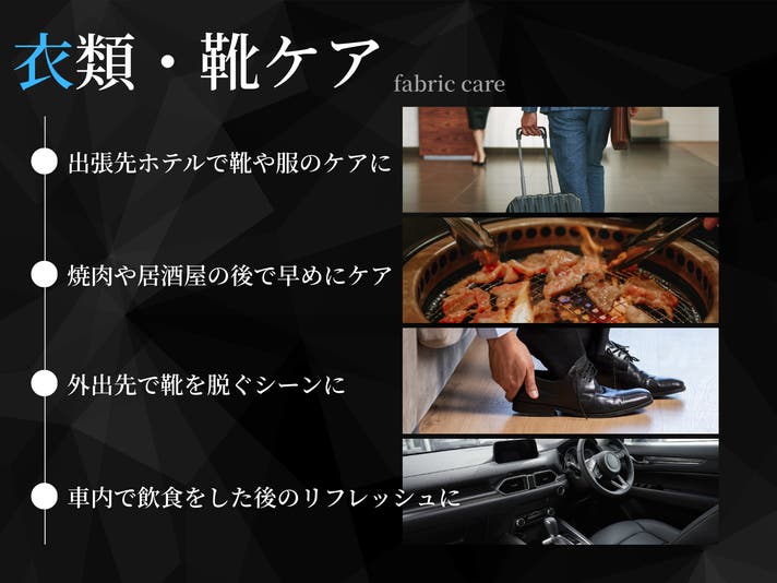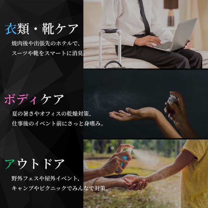 出張先でササッと消臭したり、オフィスやお出かけ先で汗や虫対策をしたり。