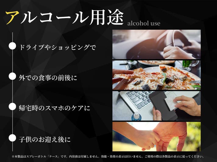 本商品はスプレーケースの販売のため、内容物によるトラブルなどは保証できません。使用される薬品については十分にご確認の上ご利用ください。