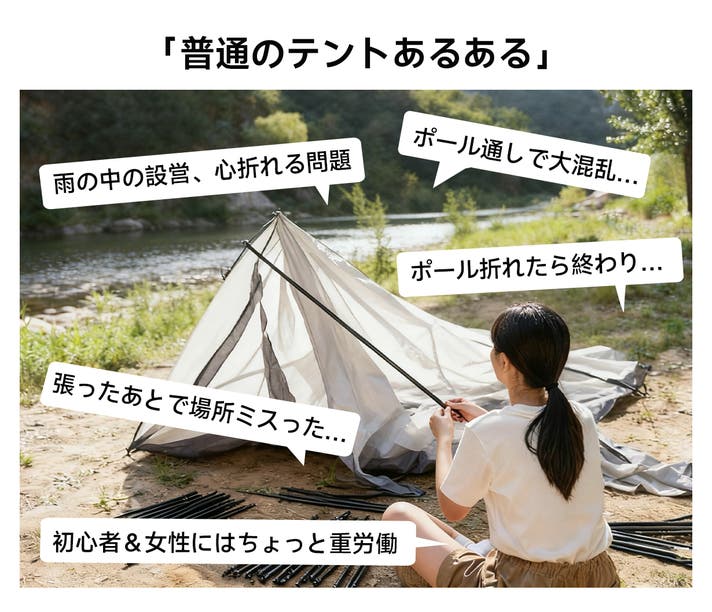 - 【圧倒的なスピード設営】 ポール組み不要!キャンプ場での「しんどさ」全部解決!
