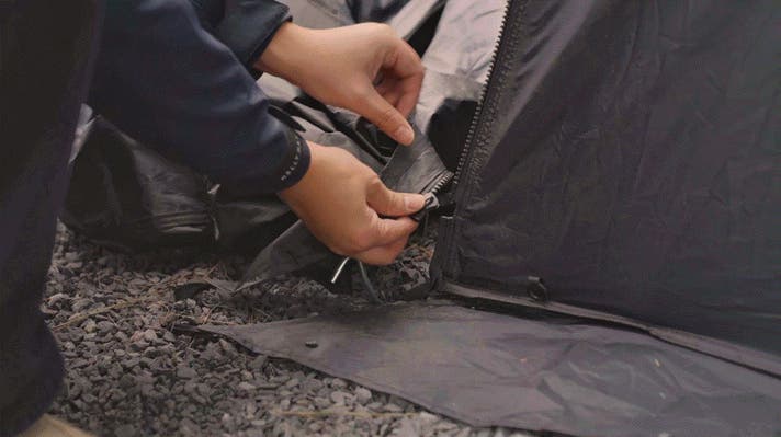 1.テントを平らに広げ、入口のジッパーが閉まっているか確認。