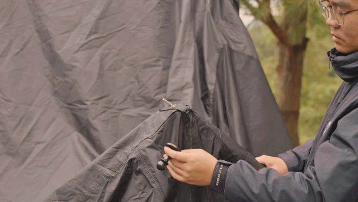 オプションの拡張前室は、ファスナーでメインテントとシームレスに連結可能です。拡張テント接続部分の縁はヘム処理が施されており、露の侵入を効果的に防ぎ、小雨からも保護します。