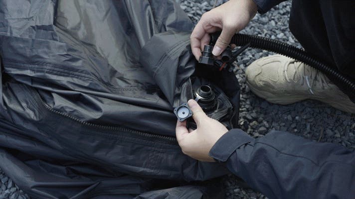 3.2〜3分でテントが完全に立ち上がるまで充気。(メインテントのみ)