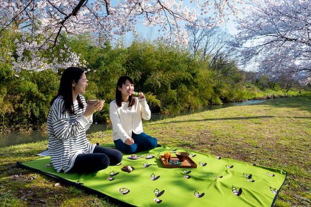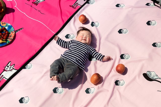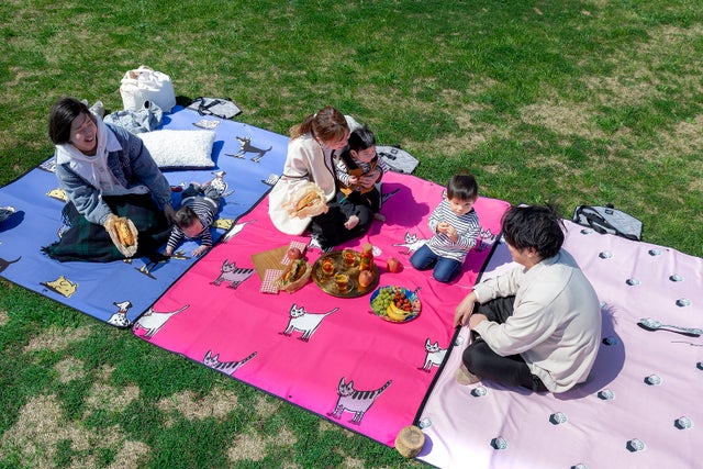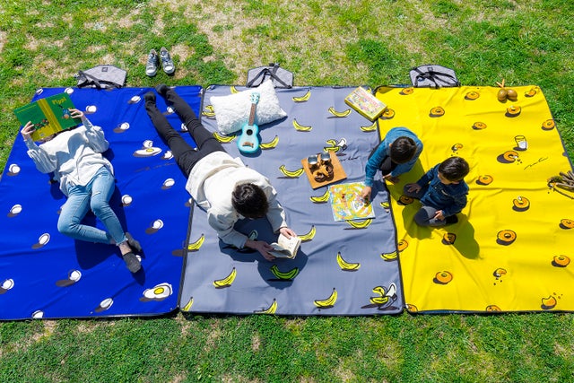 近所でのピクニックもムードラグ1枚で魔法がかかり、こんなにも笑顔に!