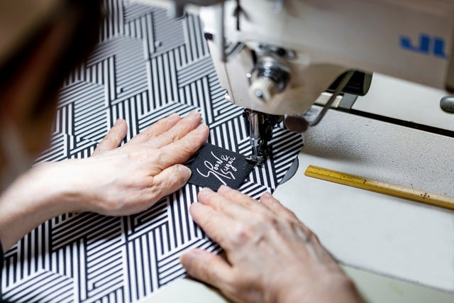 福井県内の自社工場で熟練の職人が1つひとつ丁寧に縫製しています。