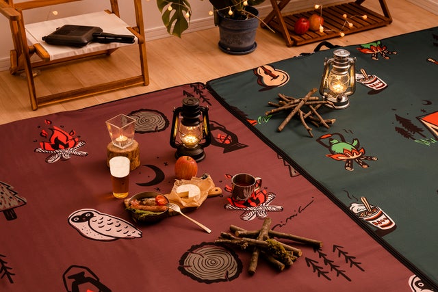 まるで絵本のようにストーリーが広がる14種類のポップアートなレジャーシート。組み合わせを変えるとそこからまた、ムードも物語も広がりそうです。男性だけのキャンプ、気分が上がる女子会、お酒を楽しむ大人パーティ、子ども達とのピクニック・・・あなたの欲しいムードに合わせてデザインの組み合わせを楽しんでください。