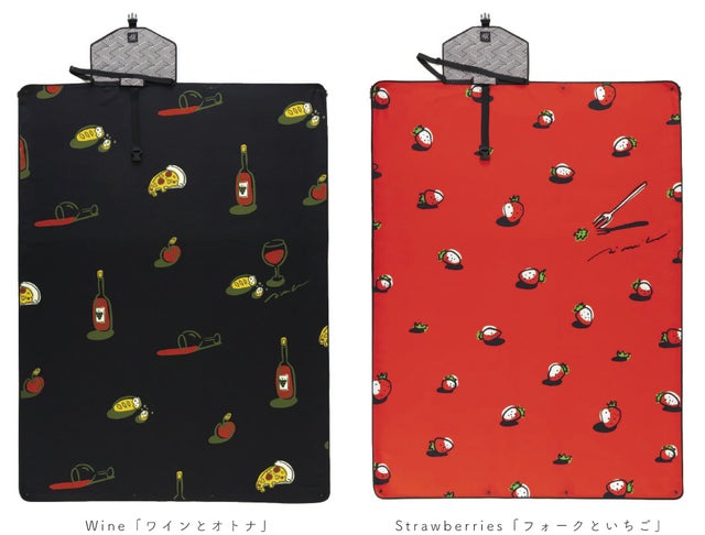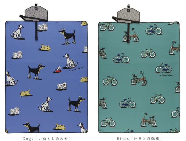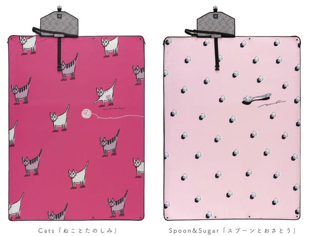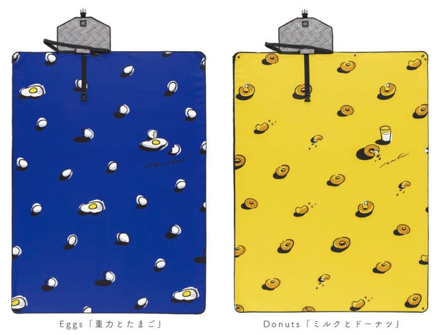 ドーナツ、自転車、ねこ・・・身近なものを題材にした14種類のアートをそのままレジャーシートにした「ムードラグ」。デザインは、NYと日本を拠点に活躍するアーティストaiMIKI(アイミキ)が手掛けています。