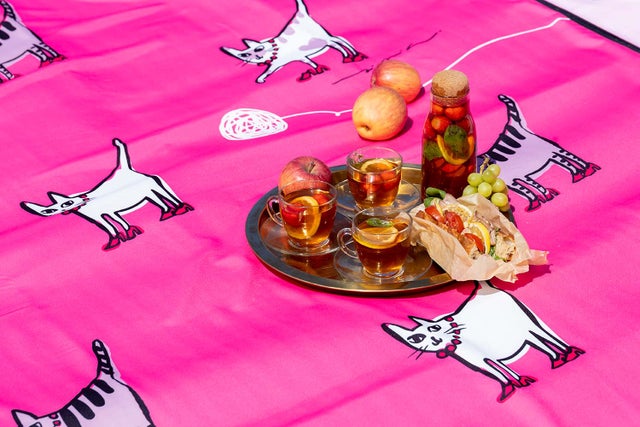 カラフルでポップな絵柄は、どれもクスッと笑える遊び心を忍ばせてあり、どこで広げてもムードを楽しくしてくれる仕掛けがいっぱいです。