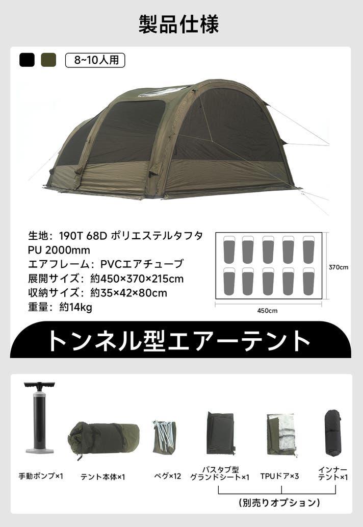 - 大型エアーテントでありながら軽量設計。 持ち運びや設営の負担を大きく減らしました!