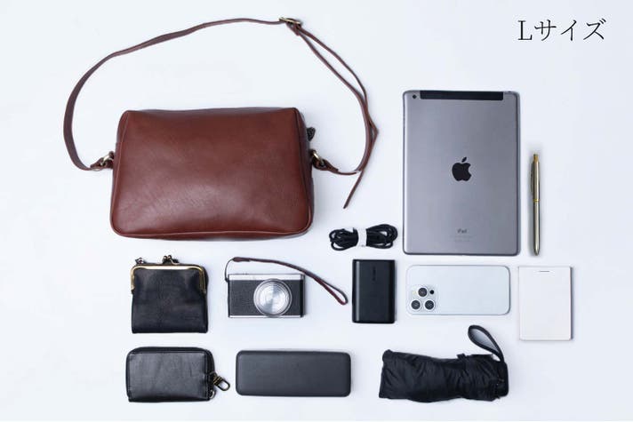 シンプルな形状のショルダーバッグなので、男女問わずご使用いただけます。サイズ違いでパートナーとのご使用もおすすめです。
