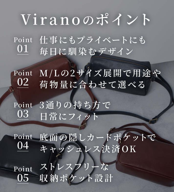 Virano(ヴィラノ)はその両方を叶える、機能性とデザイン性を兼ね備えたショルダーバッグです。