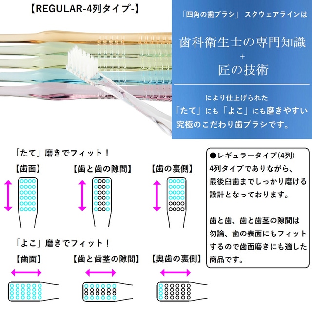 2【早割】四角の歯ブラシスクウェアライン REGULAR 1セット