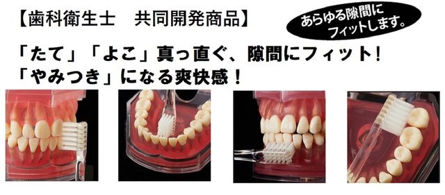 ・毛束の倒れを防ぎ、歯と歯、歯と歯茎の隙間、奥歯の裏まで「たて」にも「よこ」にもしっかりと磨けます。(特許庁 意匠登録商品)