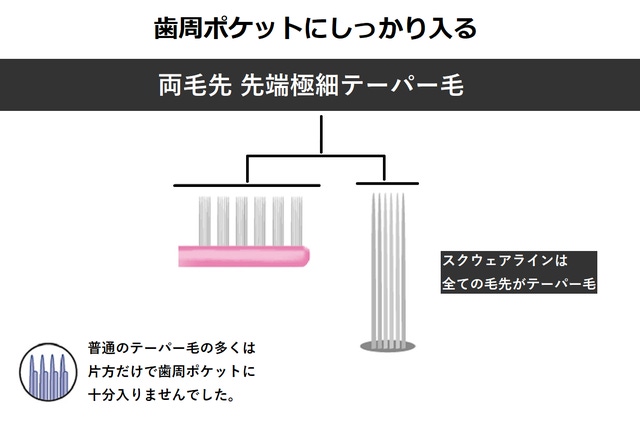 ・歯周ポケットにしっかり入る先端極細毛を使用。