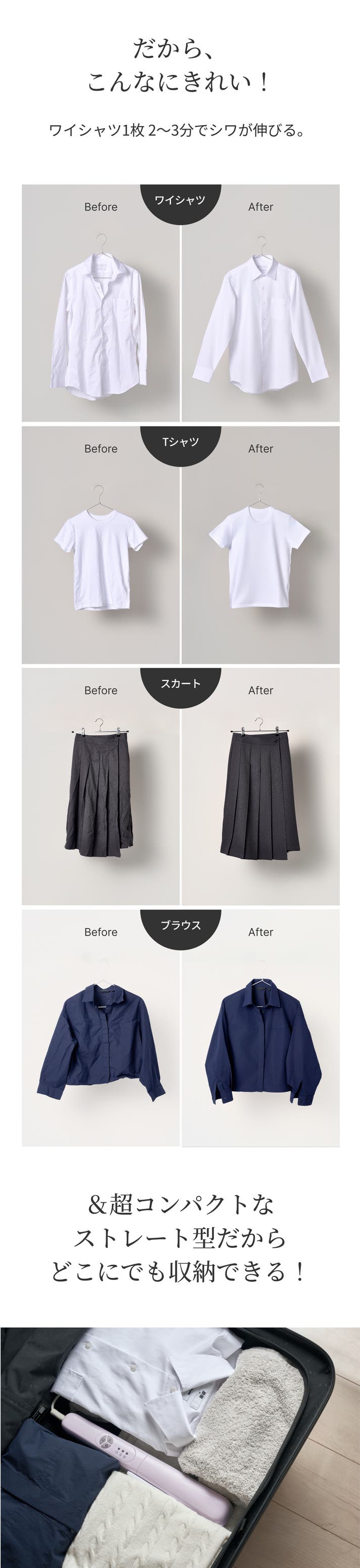 - 【ポータブル設計】軽量&コンパクトだから、旅先でもプロ級仕上げのシワ伸ばし。