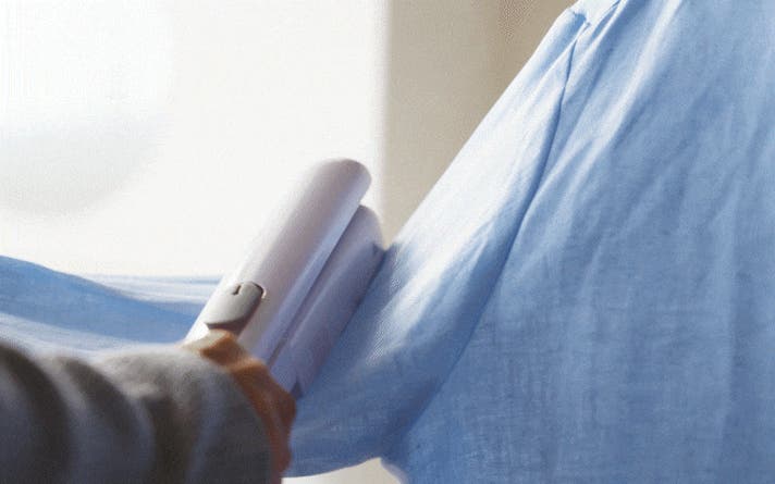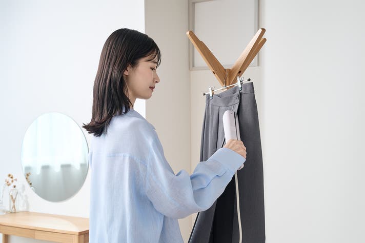 スチームでシワを伸ばし、アイロンがけの後に気持ちよく着られます。
