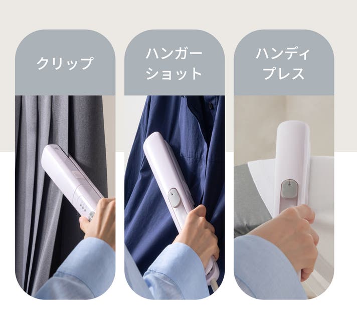 A.クリップスチームで襟や袖など細かい部分にも対応でき、広い面は付属のミトンでしっかりシワを伸ばせます。スチーム機能も併用でき、さまざまな箇所にスムーズに使えます。※衣類の素材やシワの状況にもよります。