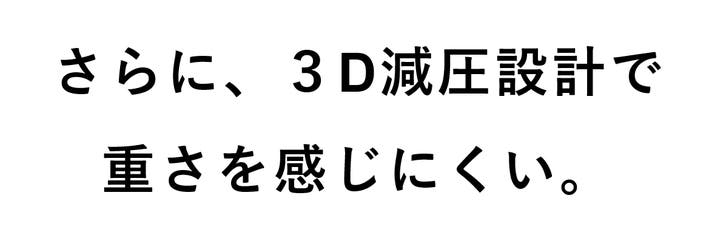 さらに人間工学に基づいて設計し、先進的な3D・減圧設計により重さを感じにくくなっています。