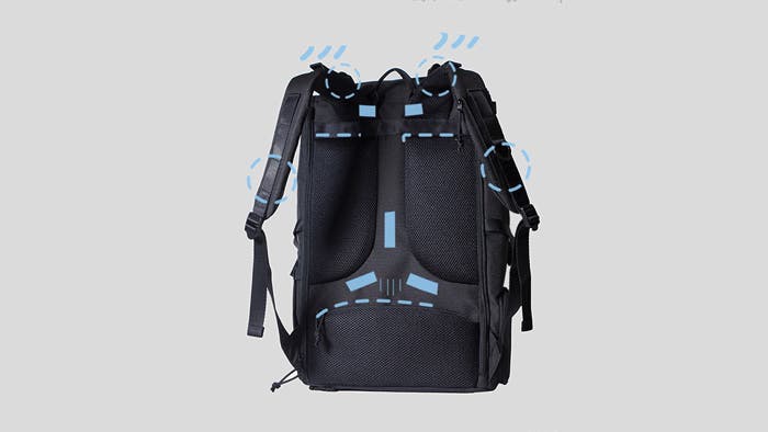 3か所の通気パッドにより、背中の通気性を高め、汗や蒸れも最小限に抑えます。