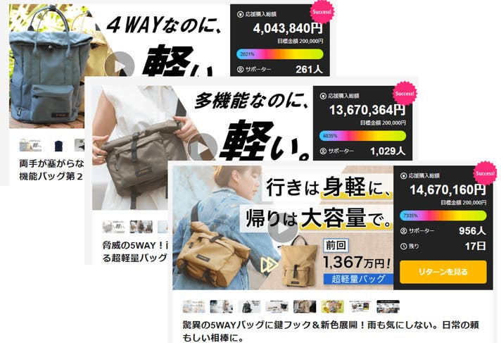 これまでにもMakuakeにて多くの多機能バッグを紹介してきました。