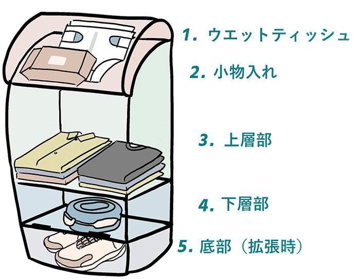 用途別の専用スペースにより、荷物が増えても散らかることなく、常に整理された状態を維持。