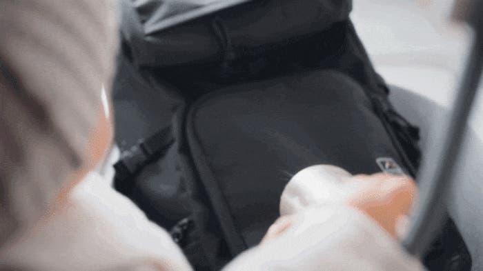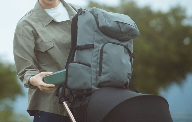 Stackallバッグは内外撥水加工を施しているため、雨の日も気にならない。
