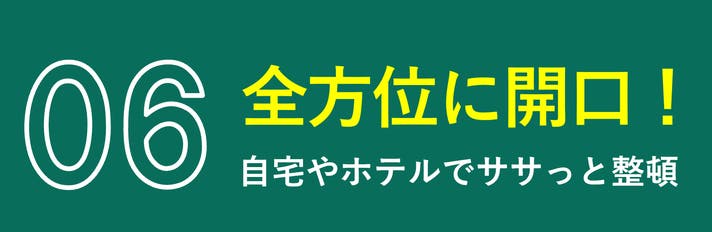 全方位に開口できるので、自宅や旅先のホテルで広げてサクッと整理できます。