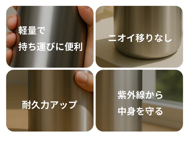 - ステンレスになったのでニオイや色移りがしにくい!さらに耐久性・遮光性up!