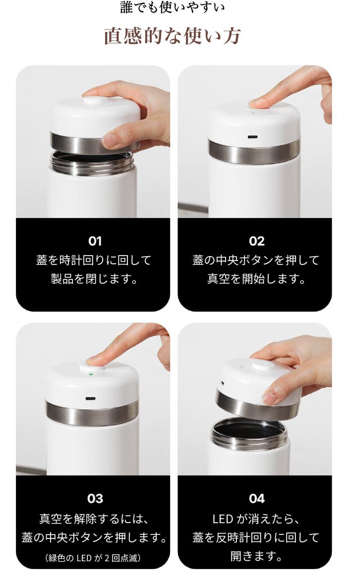 - 操作がシンプルでわかりやすい!ワンタッチたった20秒で真空が作れる