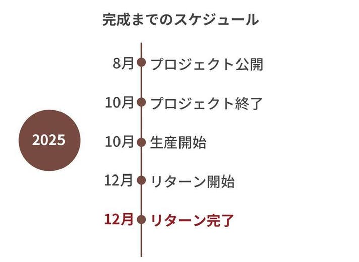 このプロジェクトはAll in型です。目標金額の達成に関わらず、プロジェクト終了日の2025年10月10日までに支払いを完了した時点で購入が成立します。