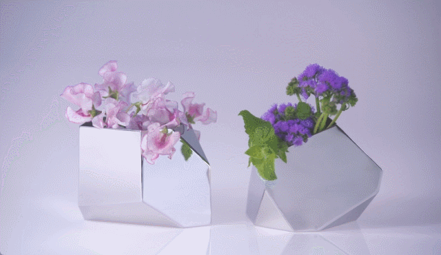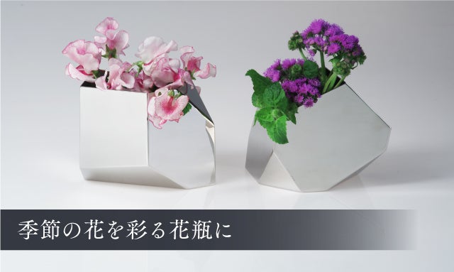 【ステンレスポリゴンボウル】は花を生ける花瓶や、フルーツやお菓子を入れるテーブルウェアとしてもご使用いただけます。
