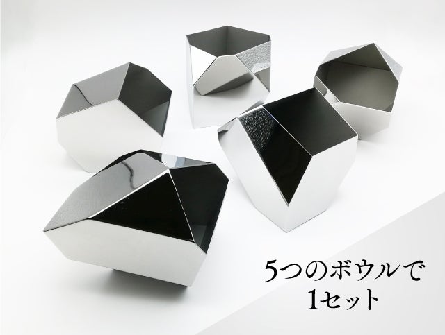 【ステンレスポリゴンボウル】は5つのボウルがワンセット。