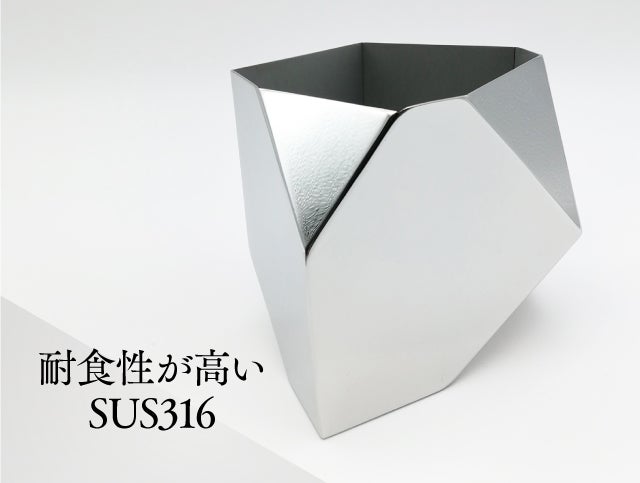 【ステンレスポリゴンボウル】はステンレスの中でも特に耐食性に優れたオーステナイト系のSUS316を使用しています。