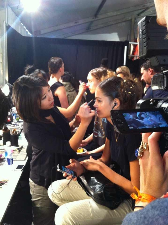(とあるショーでのメイク。手前のモデルさんを担当しているのが私です)
