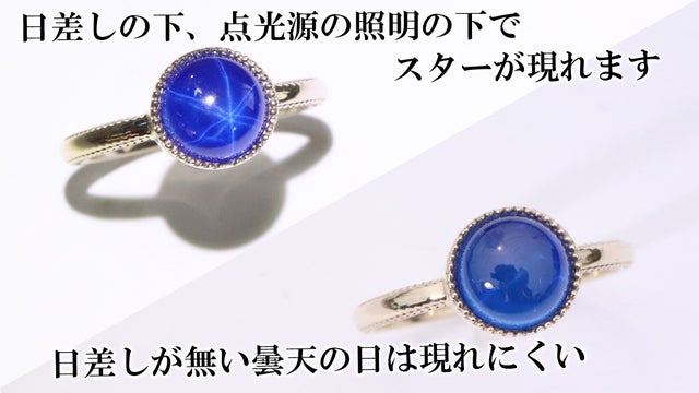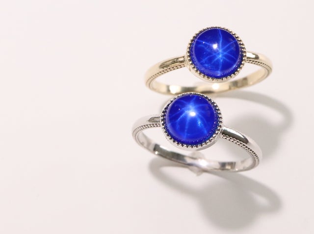 - 透明のカット石とは一味違った雰囲気を醸しだすスターサファイアは、幸福を呼ぶサムシング・ブルー