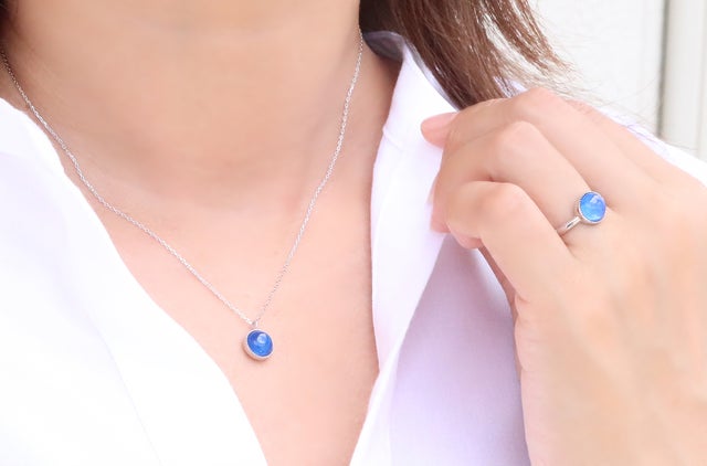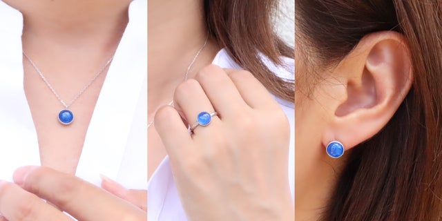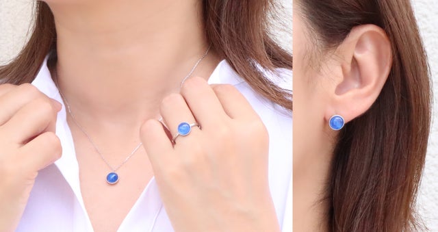 ご案内のブルースターサファイア宝石は、お手頃な価格で購入できるラボ(人工)で制作したジュエリーです。