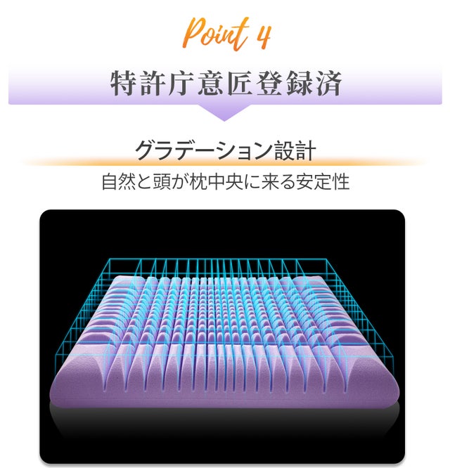 12×18のマトリクス行列にカットされ、頭皮を優しく刺激します。星雲に頭を預けるような浮遊感でスッキリ気持ち良い眠りをサポートしてくれます。